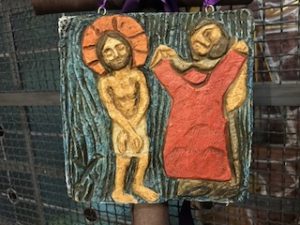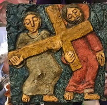 Quinta Estação – Simão, o cirineu, ajuda Jesus a carregar a cruz.