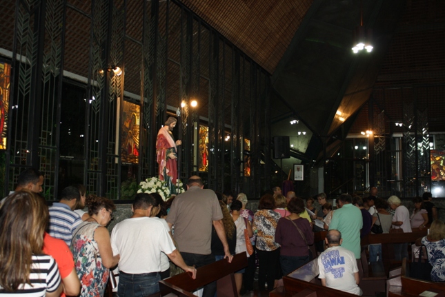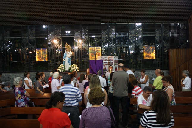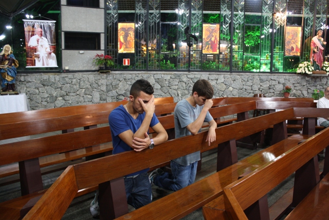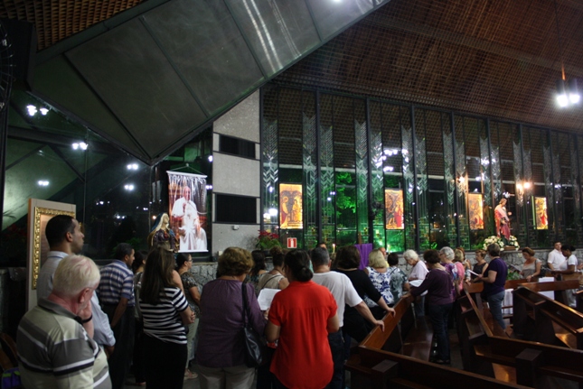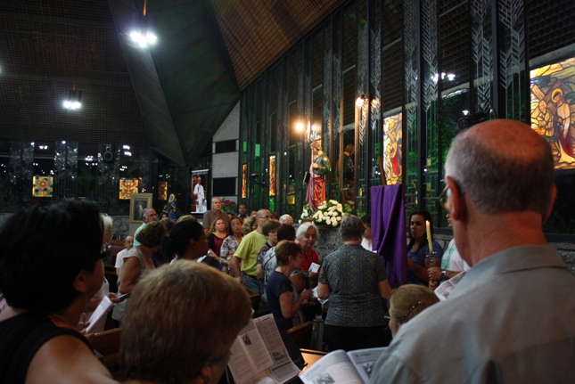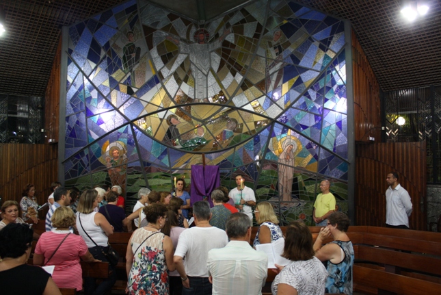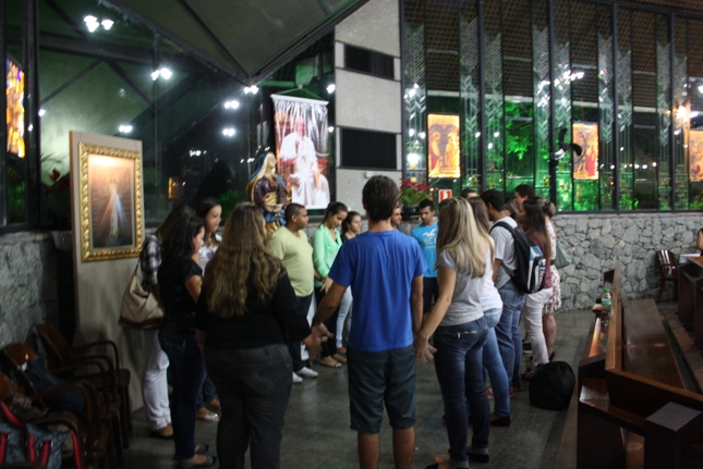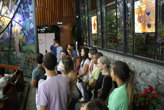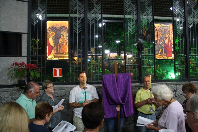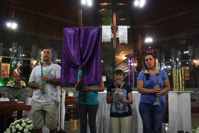 É para a Liberdade que Cristo nos libertou. Fraternidade e Tráfico Humano. Na caminhada da Via Sacra, nesta sexta-feira 14/03/14, a partir das 20hs, a Comunidade São Miguel Arcanjo rezou e refletiu, na Capela da Universidade São Judas Tadeu, seguindo os passos de Jesus. Não estavam sós. A cada minuto entrava e saia um grupo de alunos da Universidade e as vezes em silêncio ou com a energia própria daqueles jovens , que Iam rezando. No final o grupo SEGUE-ME apareceu e fez o seu momento de oração compartilhada com a Comunidade. O brilho nos olhos das moças e rapazes contagiou a todos.