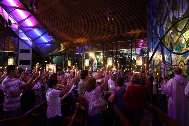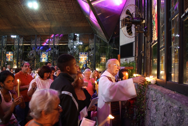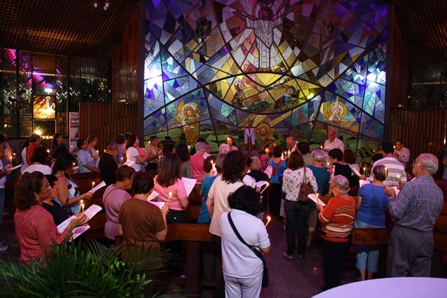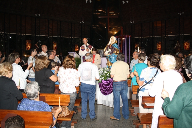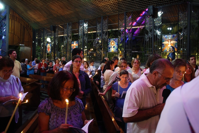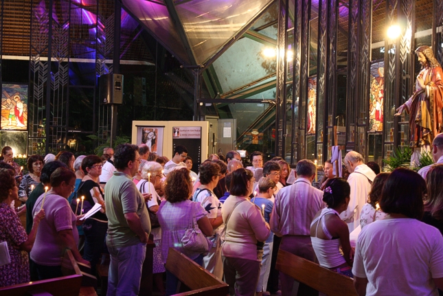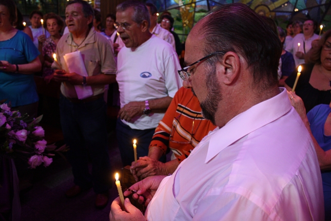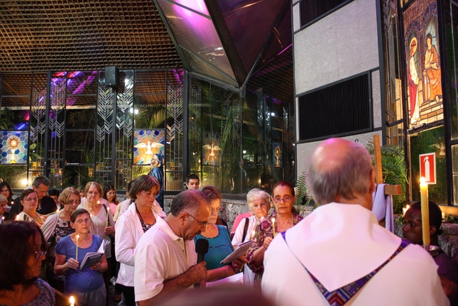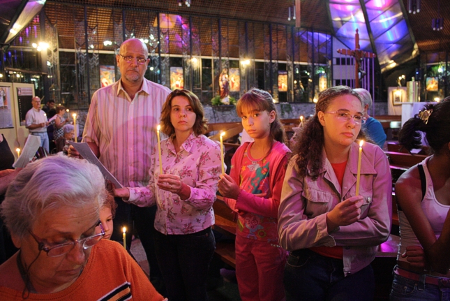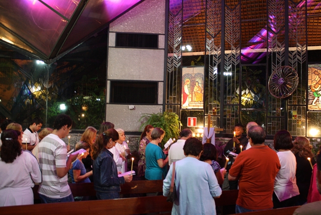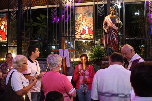 Na Via Sacra do dia 03/04/09, o propósito da Comunidade de percorrer, com Jesus, a lembrança do caminho do Calvário, à luz de velas. A pouca iluminação mostrou um paralelo com a fragilidade da segurança pública.