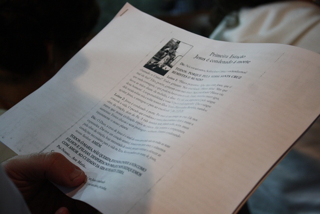 3ª Estação – Jesus cai pela primeira vez. Jesus caiu por terra em solidariedade para com a vida que é frágil e, é submetida à violência de inúmeras ações pecaminosas neste planeta. Mas, ergueu-se da queda para retornar o caminho. Jesus quer estar presente em nossas lutas com esta força e com sua entrega nos une profundamente à sua páscoa.