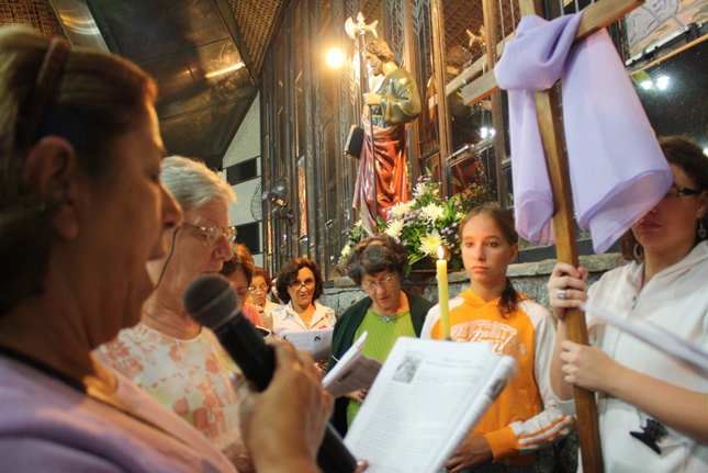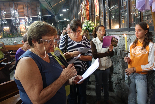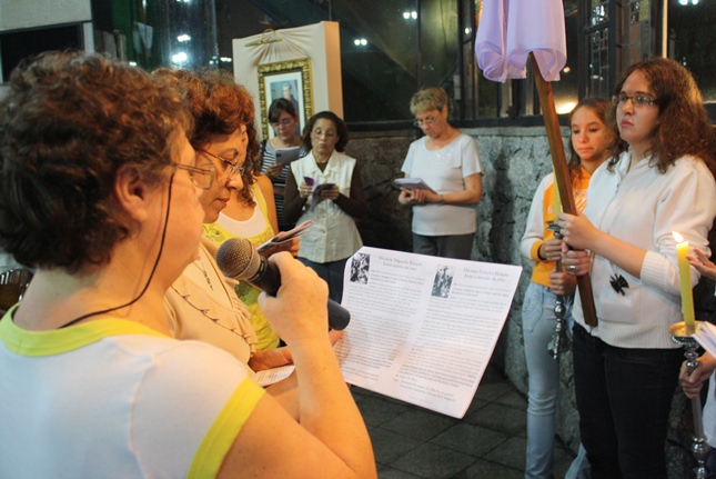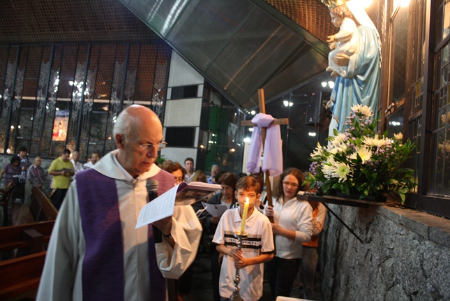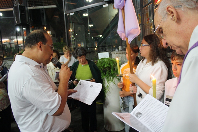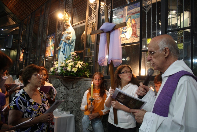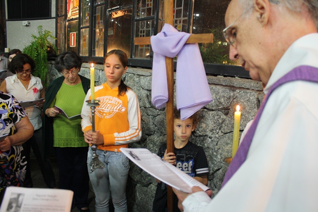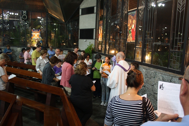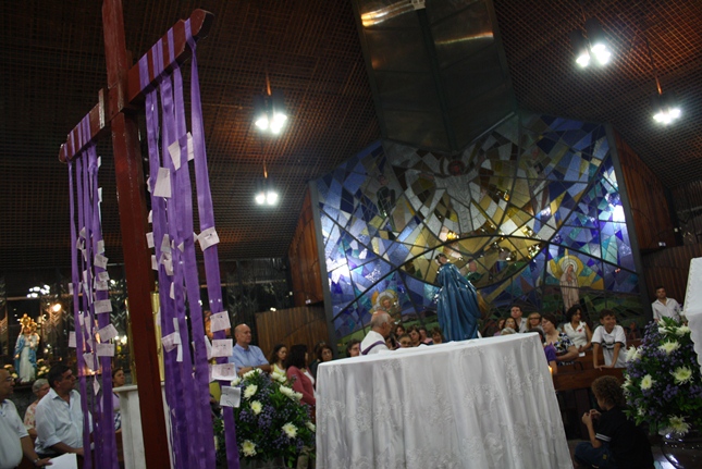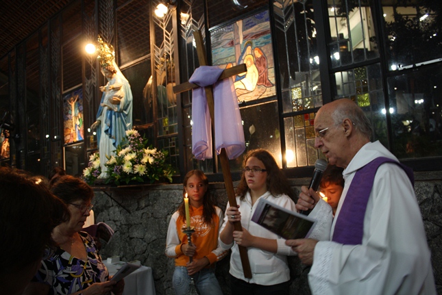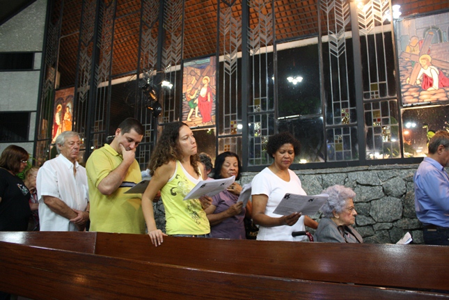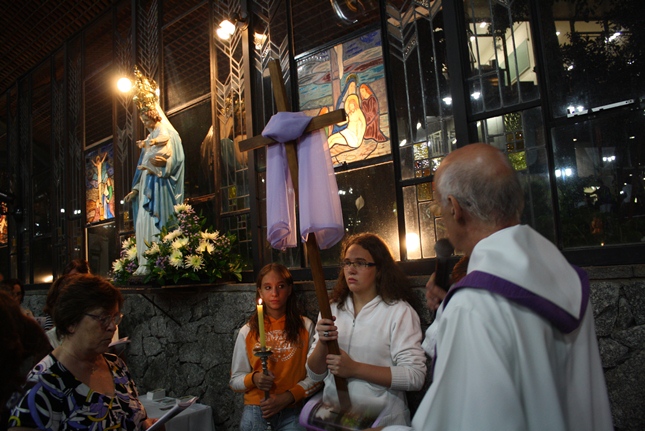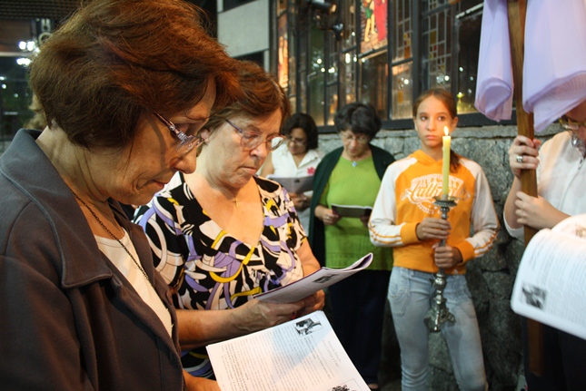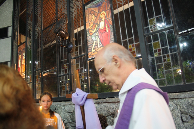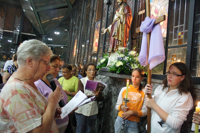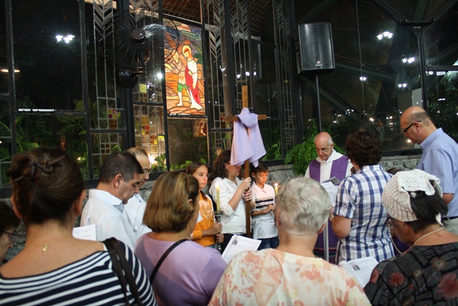 A Comunidade São Miguel Arcanjo esteve reunida para a Via Sacra nesta sexta-feira, 18/03/11, na Capela da Universidade São Judas Tadeu. Os vitrais, simbolizando as 15 estações estavam iluminados para esse momento tão singular de oração.