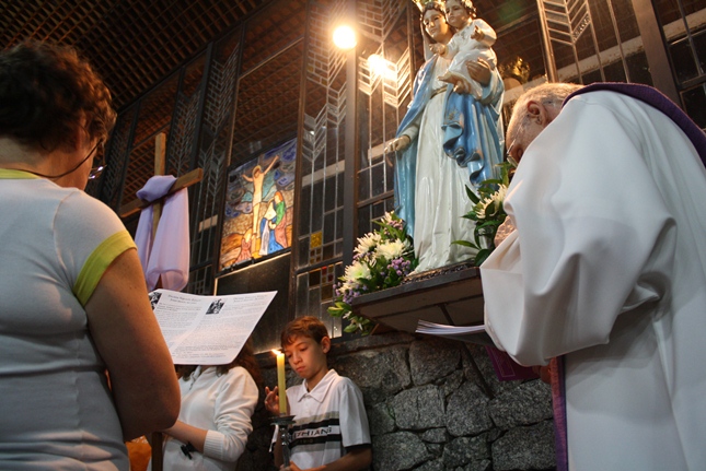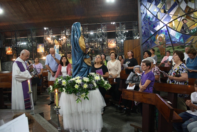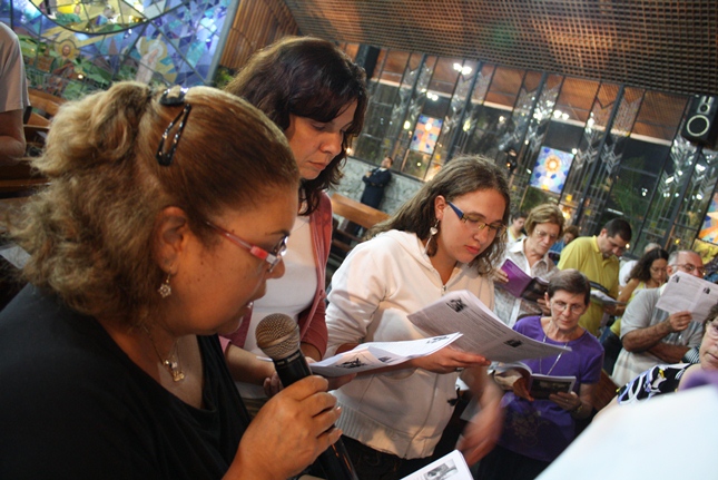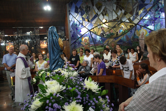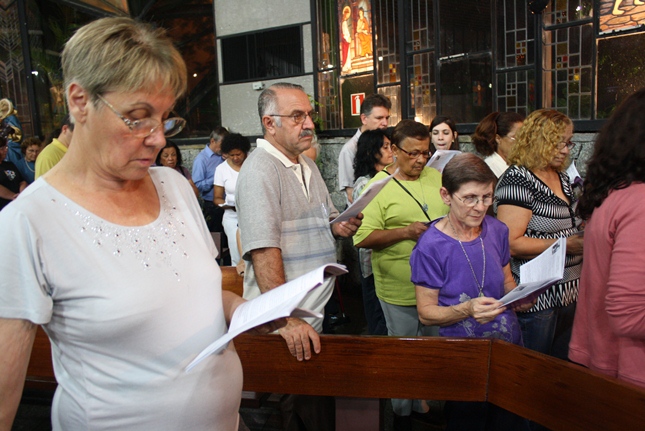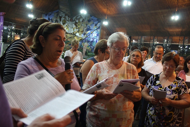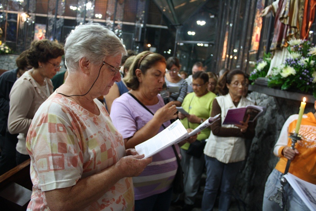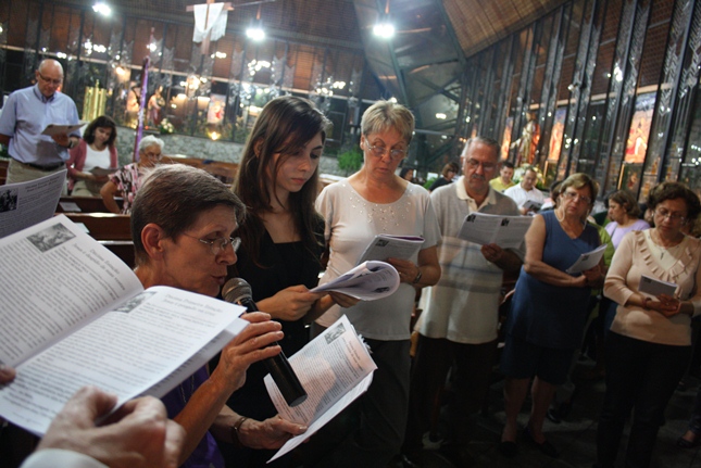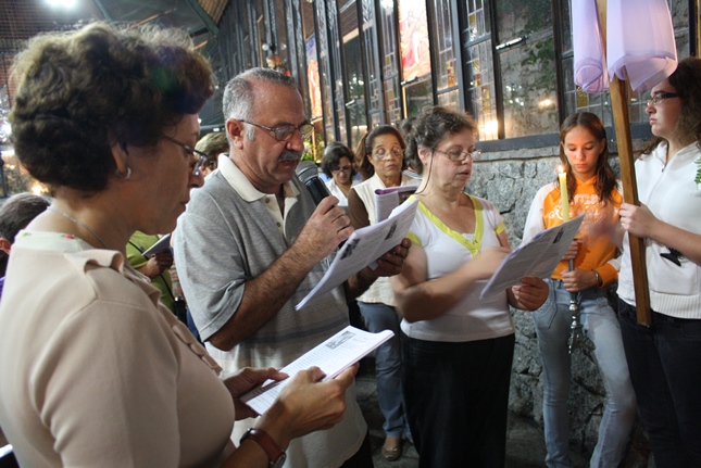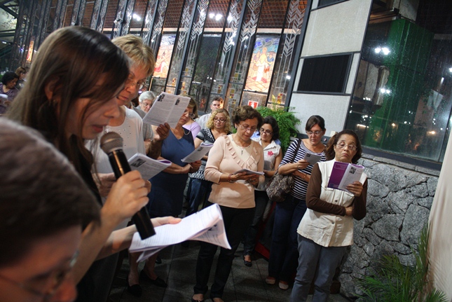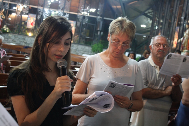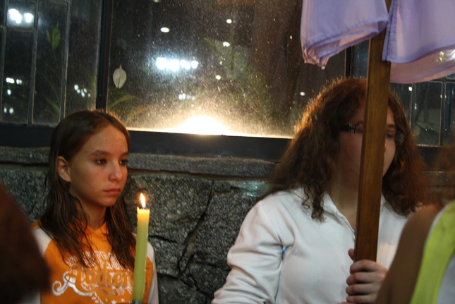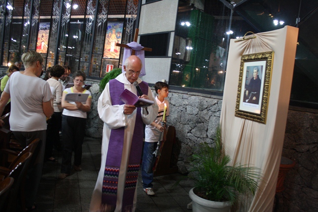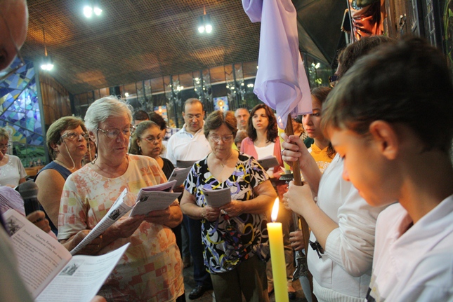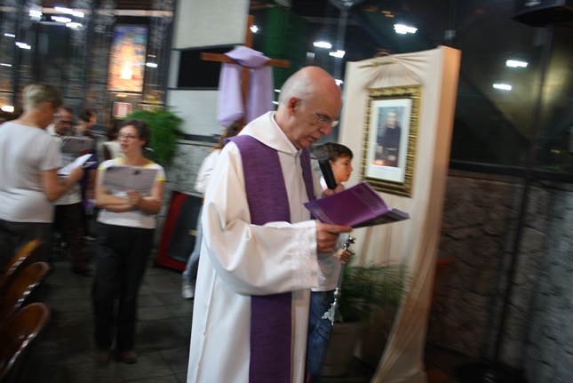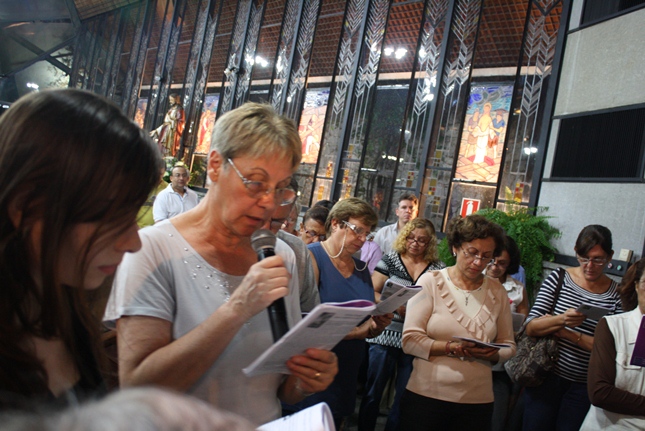 A Comunidade São Miguel Arcanjo esteve reunida para a Via Sacra nesta sexta-feira, 18/03/11, na Capela da Universidade São Judas Tadeu. Os vitrais, simbolizando as 15 estações estavam iluminados para esse momento tão singular de oração.