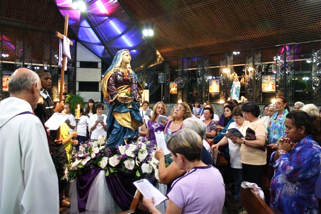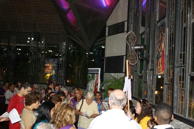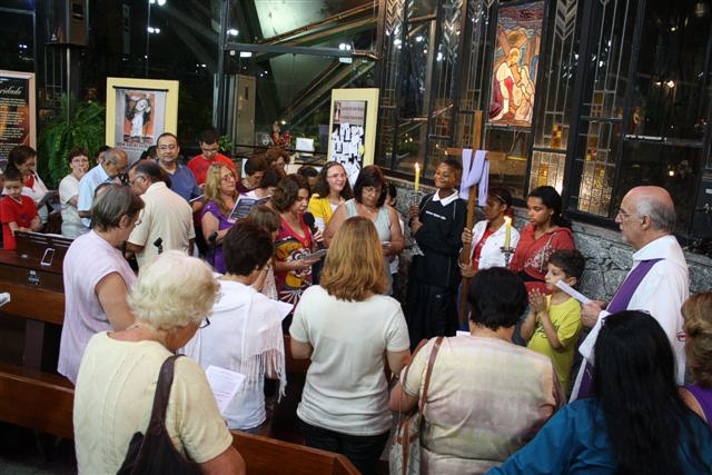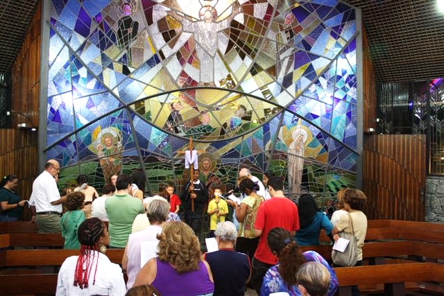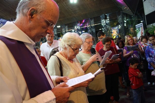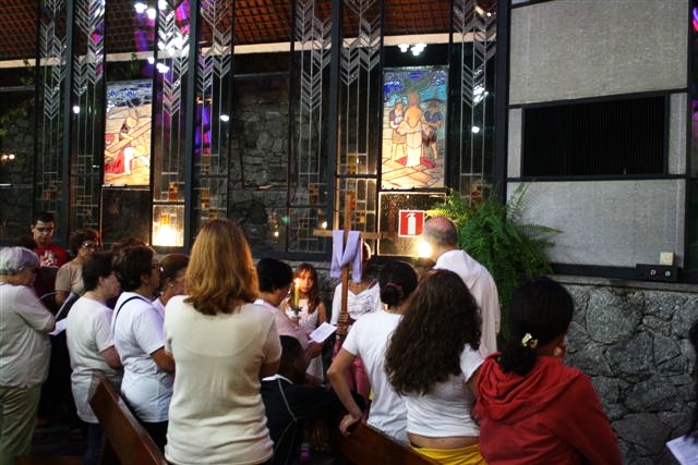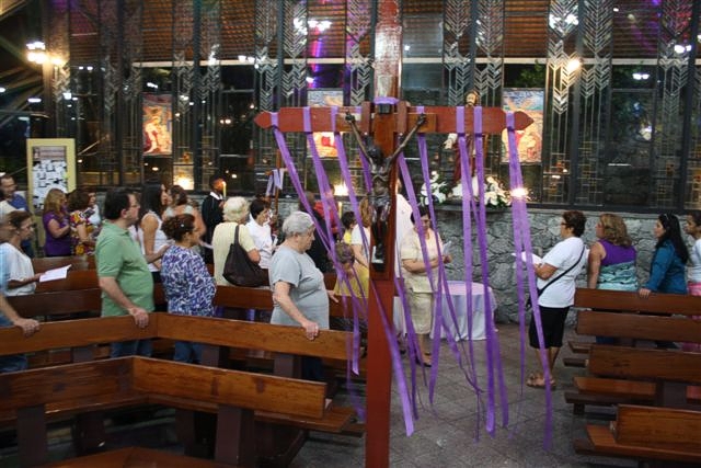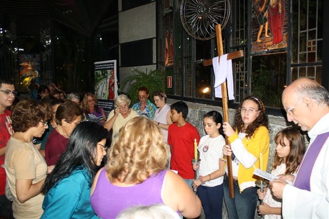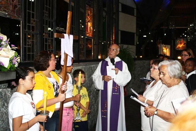 A cada Estação da Via Sacra acompanhamos o flagelo e o sofrimento de Jesus, refletindo com situações do nosso cotidiano em relação à violência, sob todas as formas e o caminho para a busca da Paz. Essa reflexão abordou também o tema da Campanha da Fraternidade.