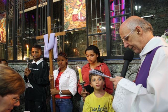 O Padre Júlio ressaltou o ensinamento de Jesus, que propôs a Justiça construída pelo amor que resulta na Paz. Mostrou que o sofrimento da caminhada para a Cruz também foi um gesto de amor de Jesus para com todos nós.