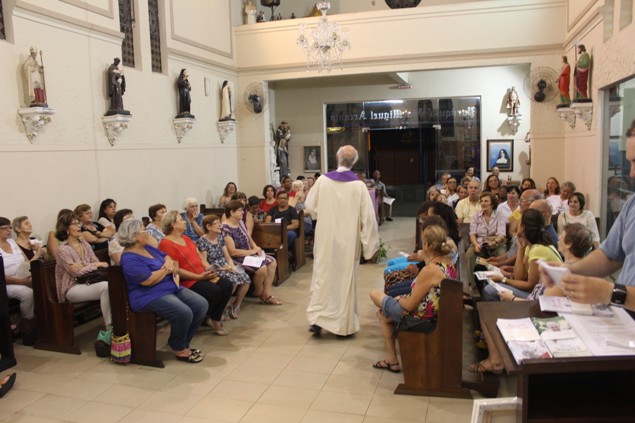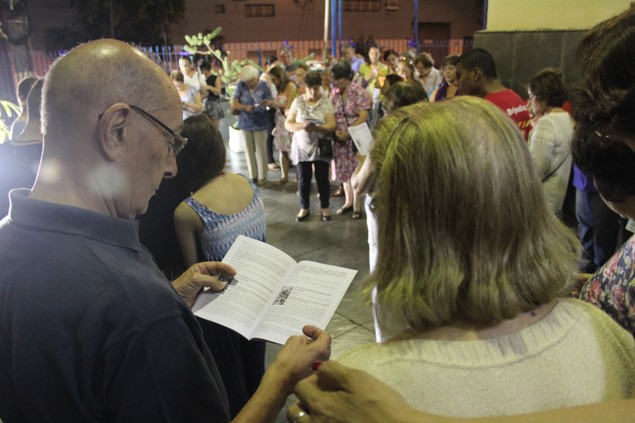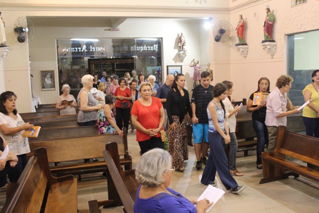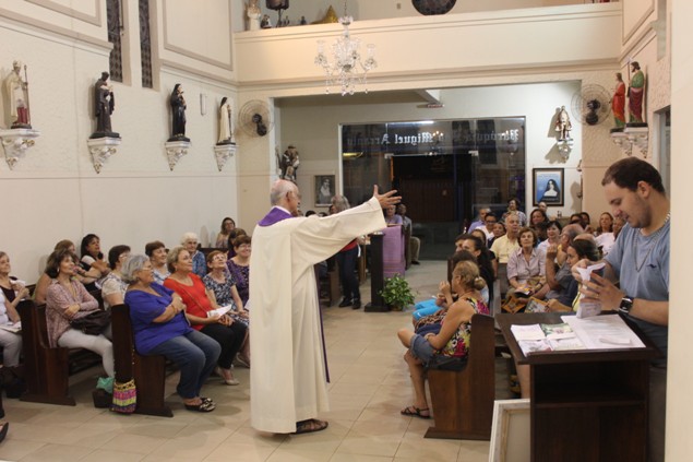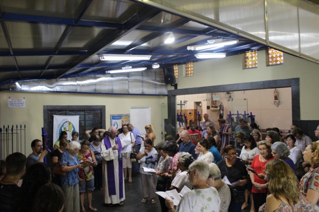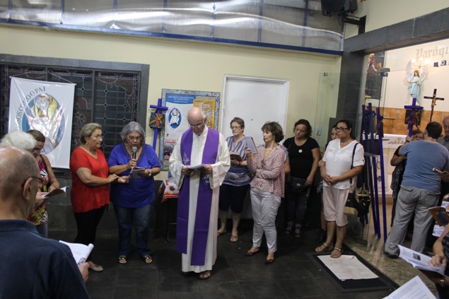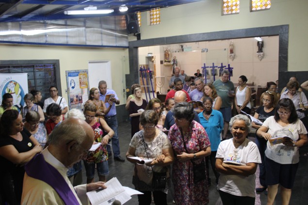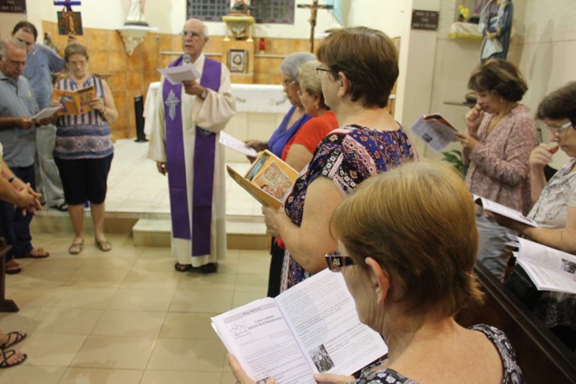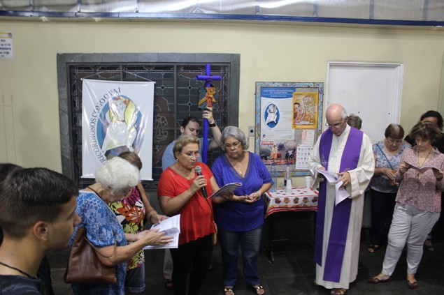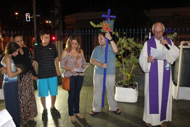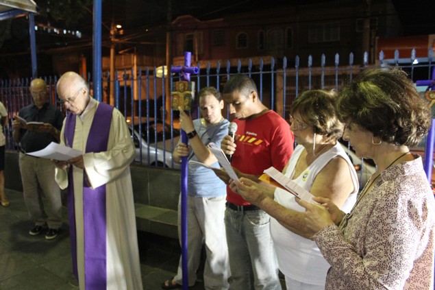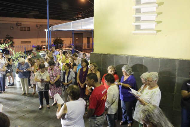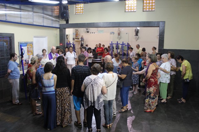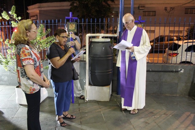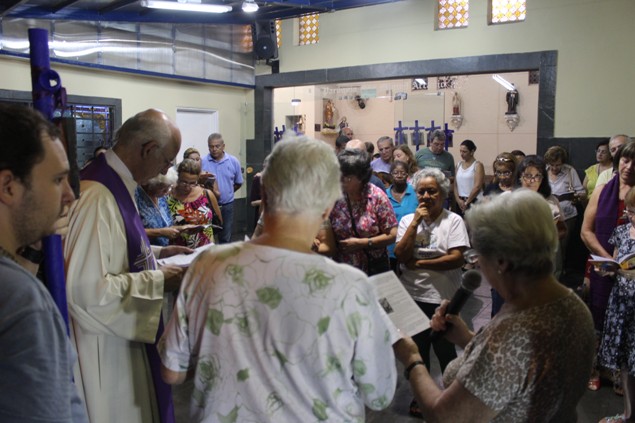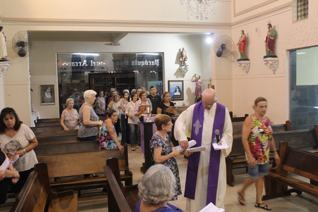 Na sexta-feira, 26/02/16 às 20h, foi celebrada a Via Sacra na Igreja São Miguel Arcanjo. O Fabretti e a Cidinha preparam com carinho os quadros das 15 estações. O Pe Julio dirigiu cada estação, com os leitores utilizando o subsídio da Região Episcopal Belém, Casa Comum – nossa responsabilidade. A caminhada, seguindo os passos de Jesus, iniciou dentro da Igreja e prosseguiu pela lateral até a porta principal. Momento destacado dentro da Quaresma.