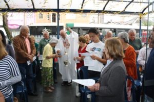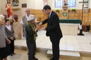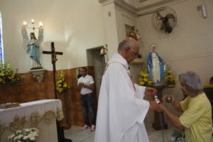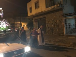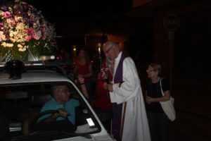Recordamos a última procissão do Senhor Martirizado e Nossa Senhora das Dores, com a parada em sua casa e, mesmo com dificuldade, caminhou amparada pelo Padre Júlio até o andor de Nossa Senhora para ali receber uma flor da mãe de Jesus.